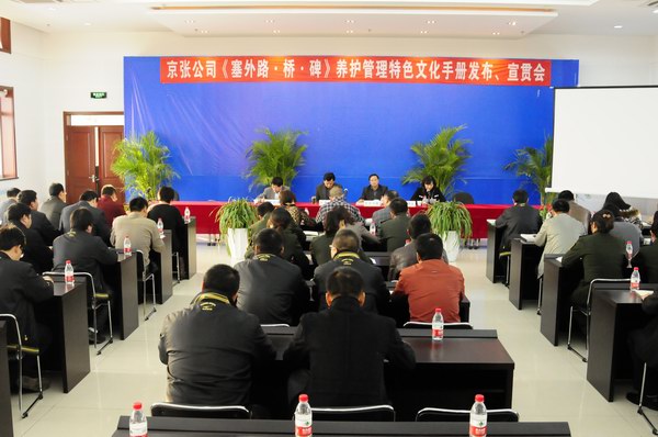會(huì)議介紹了《塞外路·橋·碑》養(yǎng)護(hù)管理特色文化手冊(cè)的編纂過(guò)程及其主要內(nèi)容。特色文化手冊(cè)是在公司分管企業(yè)文化領(lǐng)導(dǎo)的直接領(lǐng)導(dǎo)下,經(jīng)過(guò)工程養(yǎng)護(hù)部、養(yǎng)護(hù)工區(qū)及企業(yè)文化建設(shè)辦公室成員近一年的努力反復(fù)提煉、修改,最后編纂成冊(cè)的。該手冊(cè)以圖文并茂的形式生動(dòng)地展示了公司十年養(yǎng)護(hù)管理的發(fā)展過(guò)程及“以養(yǎng)護(hù)規(guī)范為準(zhǔn)則、以保障暢通為中心、以橋梁安全為重點(diǎn)、以預(yù)防性養(yǎng)護(hù)為重要內(nèi)容、以機(jī)械設(shè)備管理為保障、以隊(duì)伍建設(shè)為根本、以養(yǎng)護(hù)管理的科學(xué)發(fā)展為目標(biāo)”的養(yǎng)護(hù)管理主要特色。