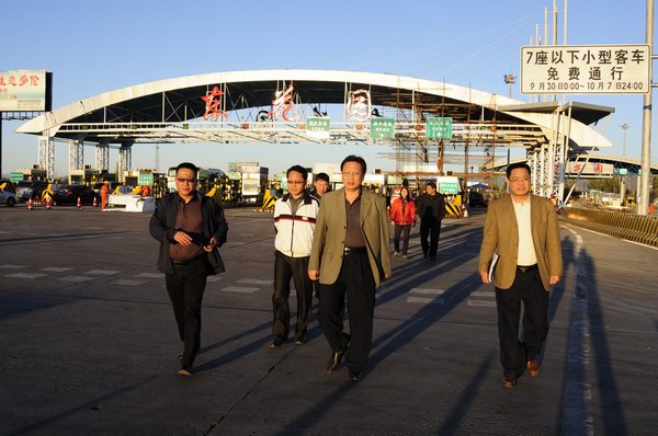 9月28日,省高管局副局長(zhǎng)康雄偉在收費(fèi)、路政、服務(wù)區(qū)等相關(guān)科室負(fù)責(zé)人員的陪同下,到公司就雙節(jié)期間小型客車免費(fèi)放行及疏堵保暢等工作進(jìn)行督導(dǎo)檢查。