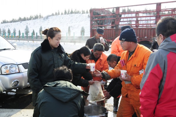 在這次除雪過程中,京張公司全面啟動應(yīng)急預(yù)案,各部門齊心協(xié)力,值班人員24小時在崗,監(jiān)控中心及時發(fā)布路況。在全力做好除雪工作的同時,公司、各收費站和服務(wù)區(qū)還派出服務(wù)車為路上滯留人員送去開水、方便面、火腿腸和榨菜等應(yīng)急食品,并給部分因低溫天氣而拋錨的故障車輛提供維修服務(wù)。同時在路上辛苦工作的養(yǎng)護工人也喝到了雞蛋湯,吃上了熱氣騰騰的包子。
