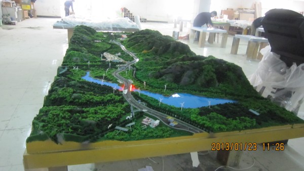 2012年下半年,公司聯(lián)系北京市夏禾廣告中心技術(shù)人員多次到京張高速拍攝實(shí)景圖片,調(diào)查路線走向和建筑物地理位置,完成了京張高速沙盤(pán)模型初步平面設(shè)計(jì),雙方簽訂了合同,該單位開(kāi)始著手加工。元月23日,公司計(jì)劃部人員到北京模型加工廠檢查督促模型制作工作。