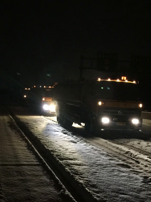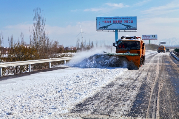 此次除雪,京張公司共出動(dòng)指揮車(chē)、巡查車(chē)、融雪液噴灑車(chē)、融雪劑干灑車(chē)、推雪車(chē)共計(jì)128臺(tái)次,出動(dòng)除雪人員314人次。共撒布融雪劑195噸,噴灑融雪液890噸。由于準(zhǔn)備充分,行動(dòng)迅速,機(jī)械化程度高,達(dá)到了省廳要求的24小時(shí)雙向四車(chē)道通行,48小時(shí)路面無(wú)積雪的要求,所轄京張路段未出現(xiàn)車(chē)輛滯留現(xiàn)象。(何文儒)