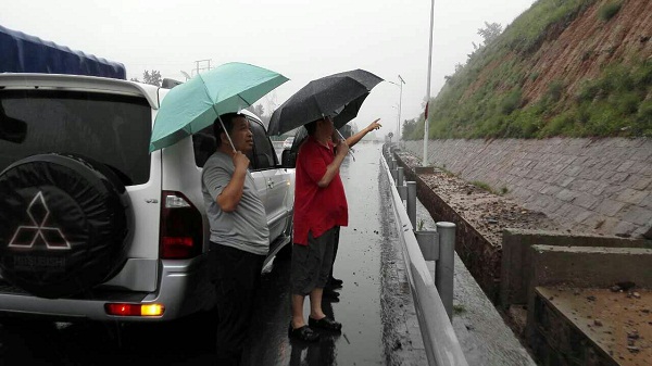 7月20日,公司防汛保暢應(yīng)急工作領(lǐng)導(dǎo)小組組長劉建民總經(jīng)理冒雨對公司防汛工作進(jìn)行檢查指導(dǎo),張學(xué)仁副總經(jīng)理、工程養(yǎng)護(hù)部相關(guān)人員陪同。近日,我省各地普降大雨,防汛形勢極為嚴(yán)峻。劉建民一行實地檢查京張高速公路沿線重點部位的防備情況,對易發(fā)生滑坡的山區(qū)挖方路段、道路兩側(cè)邊溝邊坡和易積水涵洞等進(jìn)行了細(xì)致檢查。劉建民強(qiáng)調(diào),各相關(guān)部門主要領(lǐng)導(dǎo)要切實負(fù)起責(zé)任,深入一線,靠前指揮,加強(qiáng)巡查,嚴(yán)格執(zhí)行24小時值班和領(lǐng)導(dǎo)帶班制度,全力以赴做好當(dāng)前強(qiáng)降雨各項預(yù)防工作,并及時反饋情況,確保信息暢通。要突出做好地質(zhì)災(zāi)害點防汛工作,加強(qiáng)對公路的巡查,及時組織人員清理溜方、塌方現(xiàn)場,確保行車安全暢通。 (工程養(yǎng)護(hù)部)