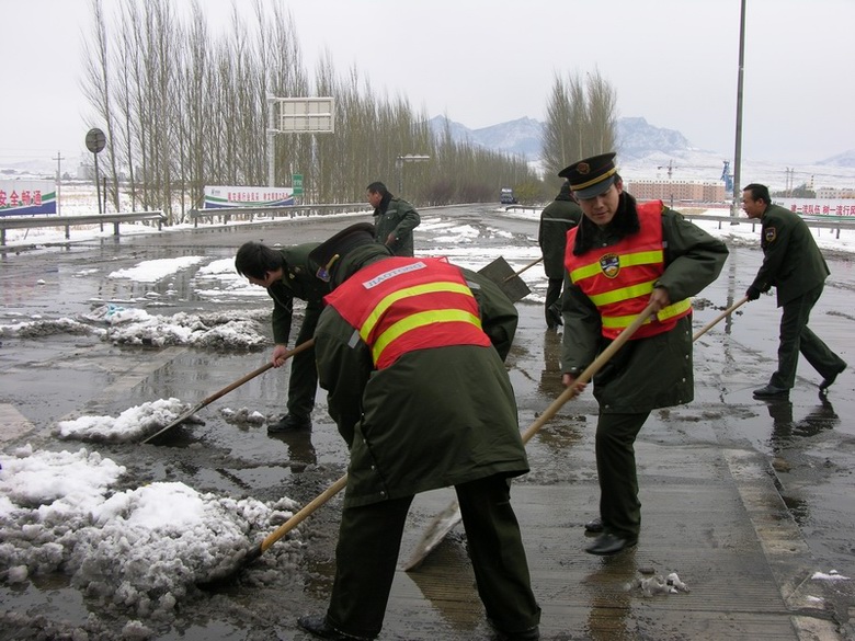 一是根據(jù)下雪時(shí)間調(diào)整除雪方案。1日上午一直在下雪,考慮到此時(shí)人工除雪效果不大,站領(lǐng)導(dǎo)決定采取灑布融雪劑的方法進(jìn)行除雪,對(duì)收費(fèi)車(chē)道、收費(fèi)廣場(chǎng)、院內(nèi)重點(diǎn)場(chǎng)所揮灑融雪劑,杜絕了積雪增多、結(jié)冰的現(xiàn)象。下午雪停后,則采取了人工除雪的方案。