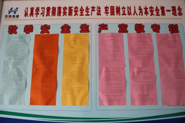 進(jìn)入秋季天干物燥,極易發(fā)生火災(zāi)等安全隱患,為確保全站人員生命及財產(chǎn)安全,雞鳴驛收費站根據(jù)季節(jié)特點易引發(fā)的安全問題,利用宣傳展板制作了秋季安全生產(chǎn)宣教專欄。展板內(nèi)容分別包括:秋季安全小常識、秋季安全行車注意事項、秋季防火十大注意事項、消防安全知識等內(nèi)容,分別介紹了生產(chǎn)生活中易發(fā)生的安全除患和每個人應(yīng)該注意的安全事項,從而提高自我保護自我預(yù)防的能力,同時,對全站人員的消防安全法律法規(guī)進(jìn)行了宣傳教育,加深了大家對消防安全法律法規(guī)的了解,進(jìn)一步增強了全員的消防安全意識,為全面完成年底的各項安全生產(chǎn)工作奠定基礎(chǔ)。(雞鳴驛收費站 王春燕)