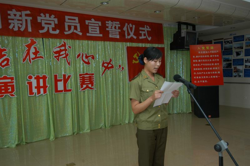 石婷同志代表新黨員向黨組織保證:“我們有著同老一輩共產(chǎn)黨人一樣堅定的政治立場,有著堅定的理想信念,有著為中國特色社會主義偉大事業(yè)而奮斗終生的決心,我們會時刻銘記自己是一名光榮的中國共產(chǎn)黨黨員,我們肩負(fù)著建設(shè)祖國未來的重任,我們絕不辜負(fù)黨組織對我們的殷切希望”。(秦國梁)