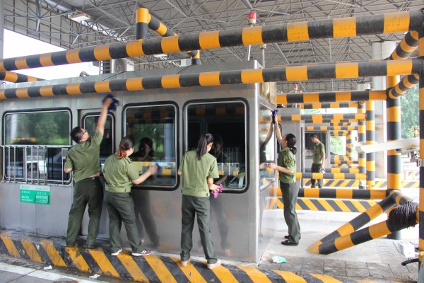 近日,由于暑期車流量激增,收費一線環(huán)境衛(wèi)生的保持成了一大難題。沙城站黨支部書記張麗芝帶領(lǐng)支部委員和其他黨員領(lǐng)導(dǎo)干部到收費一線帶頭清理環(huán)境衛(wèi)生,擦臺面、撿垃圾、清掃島頭,專撿臟活累活干,以實際行動踐行黨的宗旨,保持公仆情懷,牢記共產(chǎn)黨員永遠(yuǎn)是勞動人民的普通一員,密切聯(lián)系群眾,全心全意為人民服務(wù)。黨員鄭立、胡彥梅忙碌的身影穿梭在收費亭與收費車道之間,累得滿頭大汗,充分發(fā)揮了黨員的先鋒模范作用。收費班長薛伯東、機電維護(hù)員王嶸,收費員李巖、佟桂軍、譚鵬鵬等同志,也都爭先恐后地?fù)屩。?jīng)過三個多小時的奮戰(zhàn),收費亭、收費廣場、安全島頭、排水渠等部位得到了全面徹底的清理,站區(qū)面貌煥然一新。此時,大家早已汗流頰背,卻沒有一個人喊苦喊累,看著干凈整潔的站區(qū)環(huán)境欣慰地笑了,因為能為過往司乘提供干凈整潔、安全暢通的行車環(huán)境是我們最大的快樂,能夠?qū)崒嵲谠诘貫樗境颂峁﹥?yōu)質(zhì)服務(wù)是黨員領(lǐng)導(dǎo)干部和職工們共同的心聲。