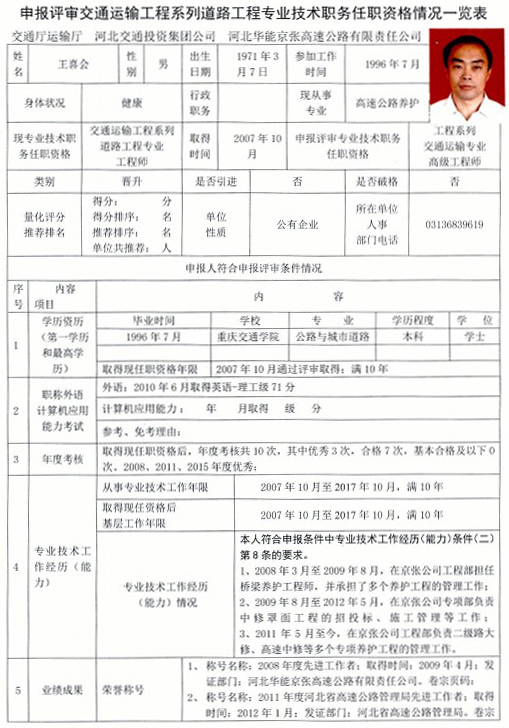 京張公司2017年度專業(yè)技術(shù)職稱申報(bào)公示(王喜會)