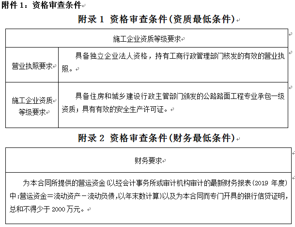3.1本次招標(biāo)要求投標(biāo)人具備獨(dú)立企業(yè)法人資格,滿足本公告附件1要求的資格審查條件,并在人員、設(shè)備、資金等方面具備相應(yīng)的施工能力。