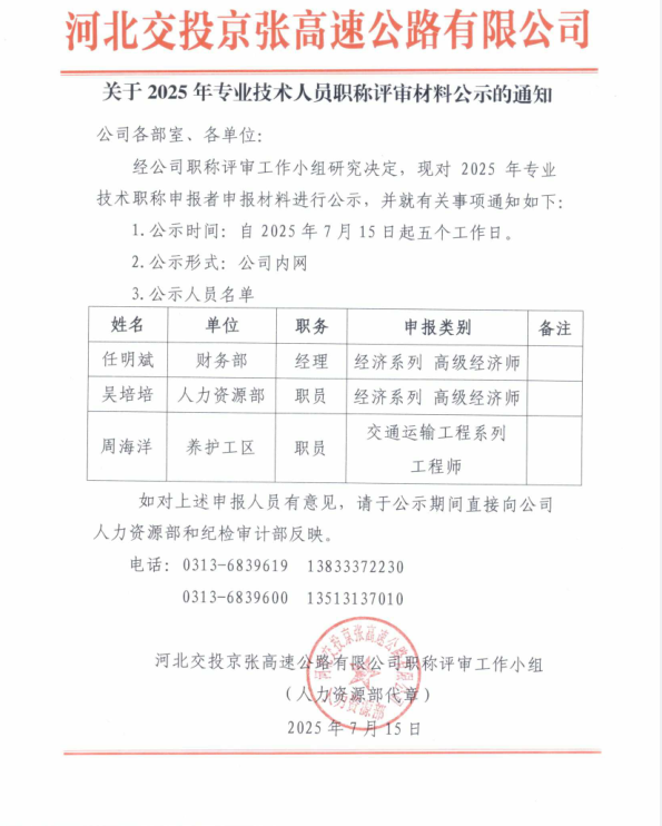 關(guān)于2025年專(zhuān)業(yè)技術(shù)人員職稱(chēng)評(píng)審材料公示的通知